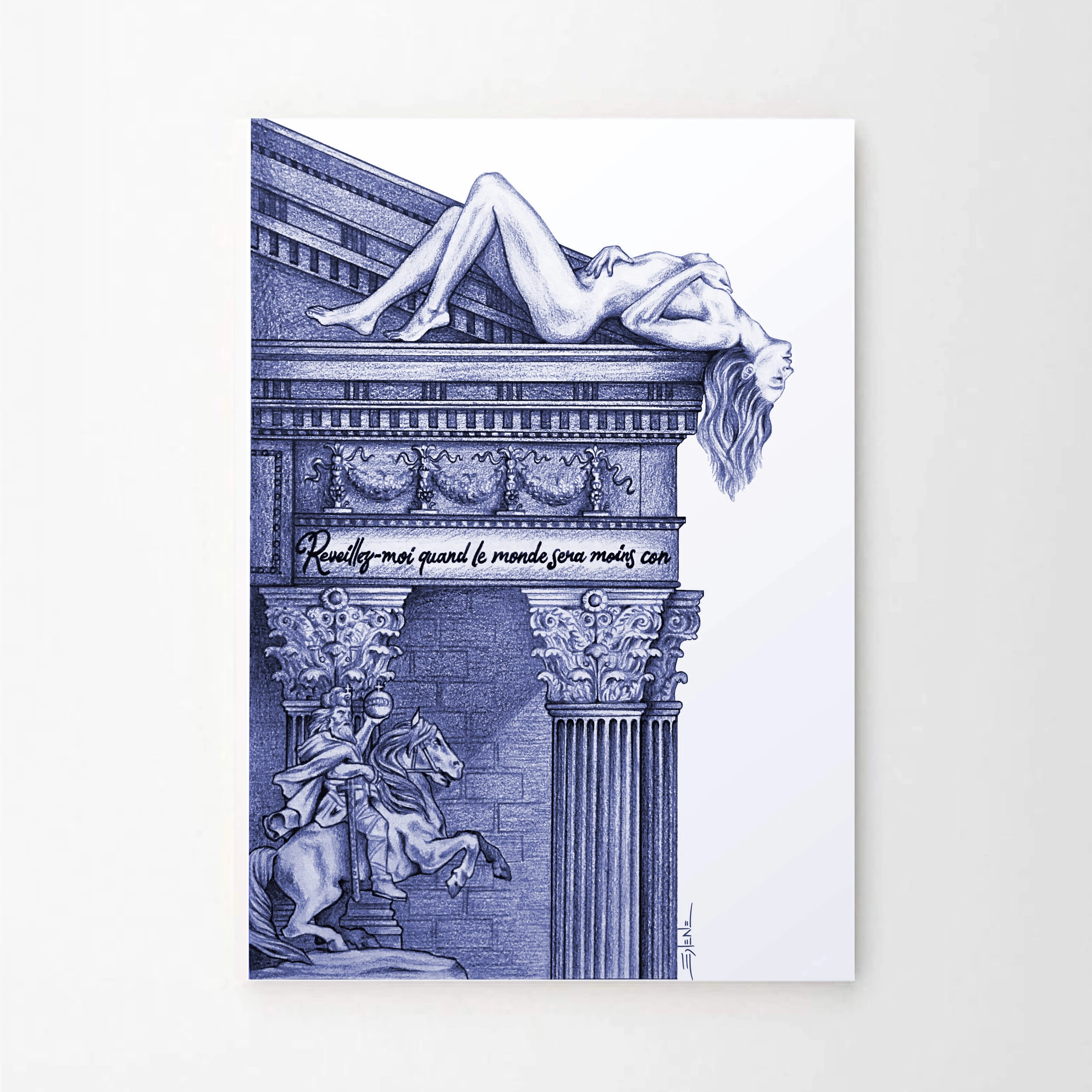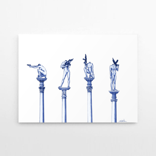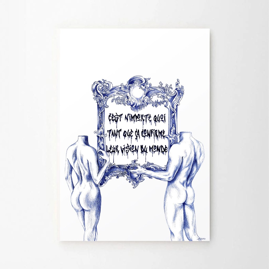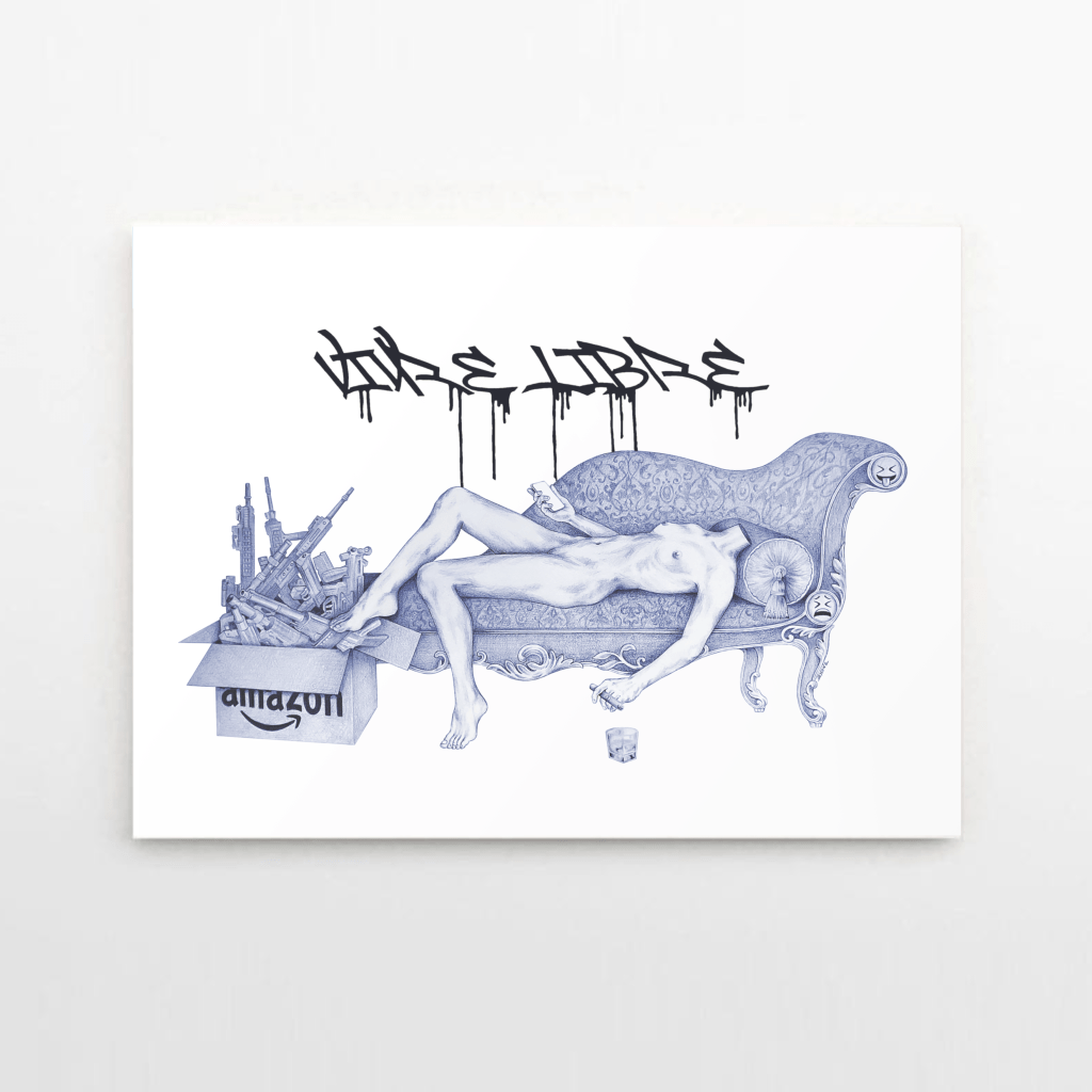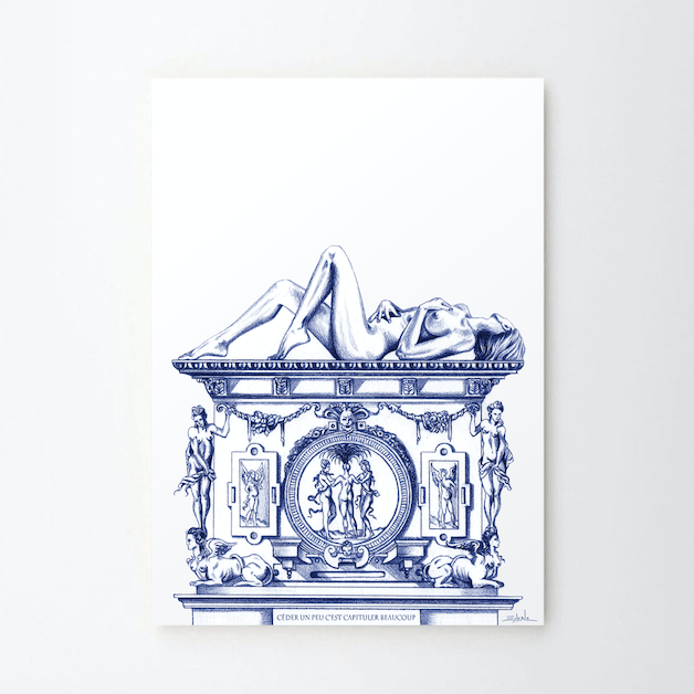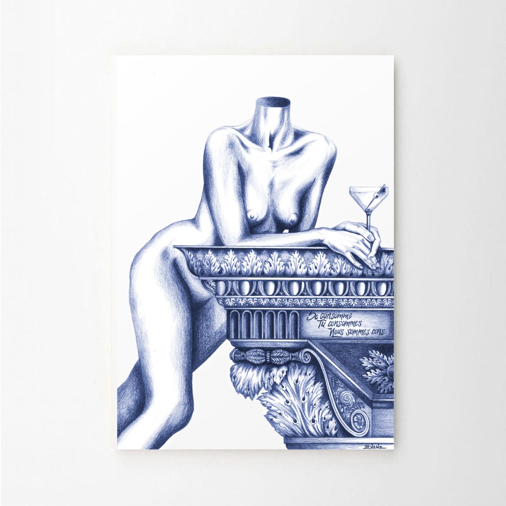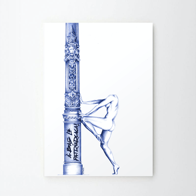 Solene Biche’s “Lignes de Décadence” (Blueprints of Decadence) series is an exploration of the interplay between activism, globalisation, and technological advancement. The works delve into the challenges faced by political movements and activism in the contemporary era, highlighting the shifting landscape of activism in an increasingly interconnected and digital world.
