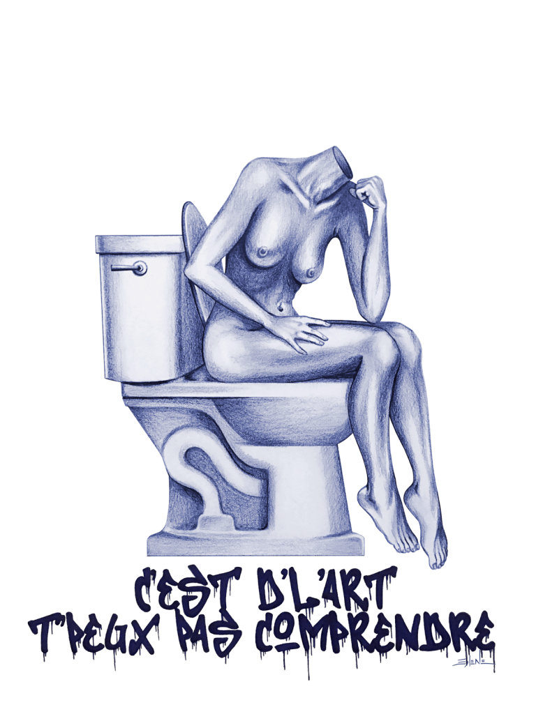 The choice of a toilet as a subject matter is a nod to Duchamp’s work, which challenges the traditional notions of what art should be and how it should be presented. It is a rejection of societal norms and conventions, with the headless figure representing the idea that true art should not be limited by societal expectations.