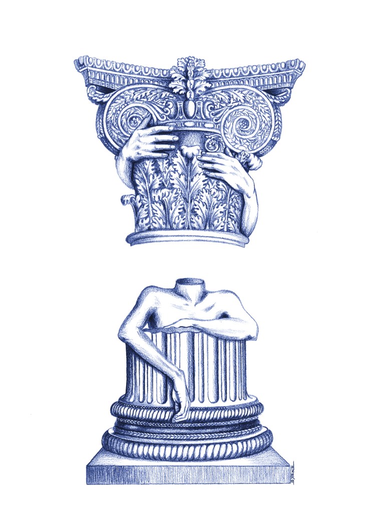 “Matriarche” explores the theme of power, femininity, and the absence of a traditional patriarchal structure. The headless woman symbolises the lack of an identifiable authority figure, while the capital above her head represents an ascension to power through a coronation. The work challenges the conventional understanding of power dynamics and raises questions about the notion of beauty and the ways in which women’s bodies have been treated as mere ornamentation.