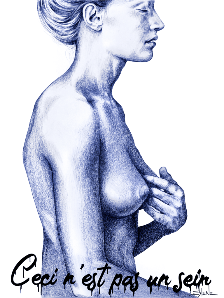 The words “Ceci n’est pas un sein” written underneath it, in reference to the words “Ceci n’est pas une pipe” in Magritte’s painting, makes the statement that the censorship of female nipples is a form of deception, a kind of treachery that undermines our freedom of expression. The work asserts that the censorship is not rooted in actual morality, and calls for a reevaluation of the policies that restrict the expression of certain genders.